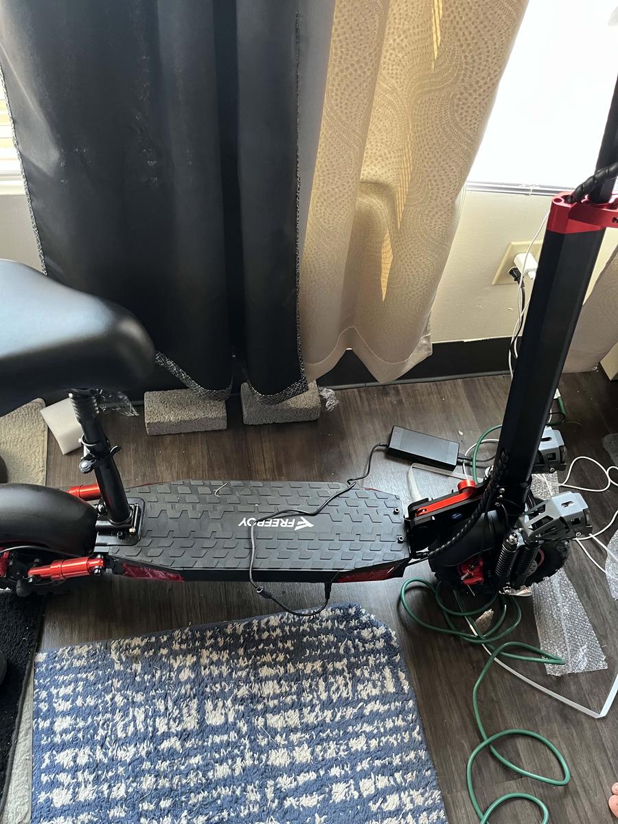 Exactly as described a BEAST!. I have bought a couple scooters before but nothing like this MONSTER!. Great design they thought on every single detail.!!! 100% RECOMMENDED